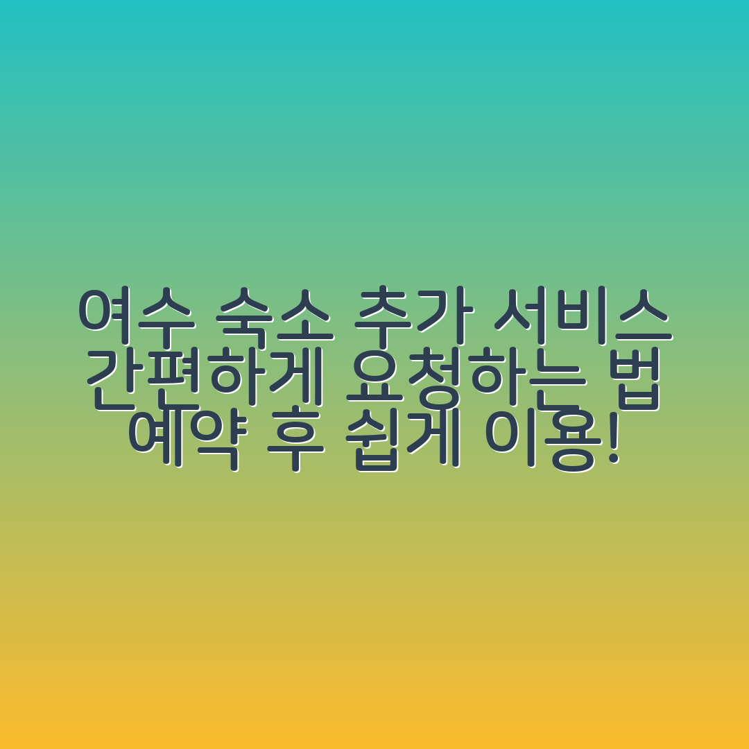 여행 준비에 고민이 많으시죠? 특히 여수 같은 아름다운 목적지에선 숙소 예약 후 이용할 수 있는 추가 서비스가 궁금할 것입니다. 체크인 후 필요한 요청을 시기적절하게 하는 것이 중요하지만, 막막할 수 있습니다.